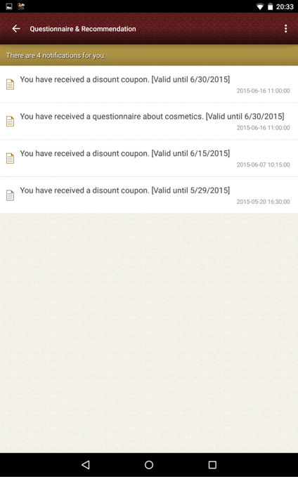 Questionnaires, which you can receive coupons and so on by answering, and recommendation will be delivered.